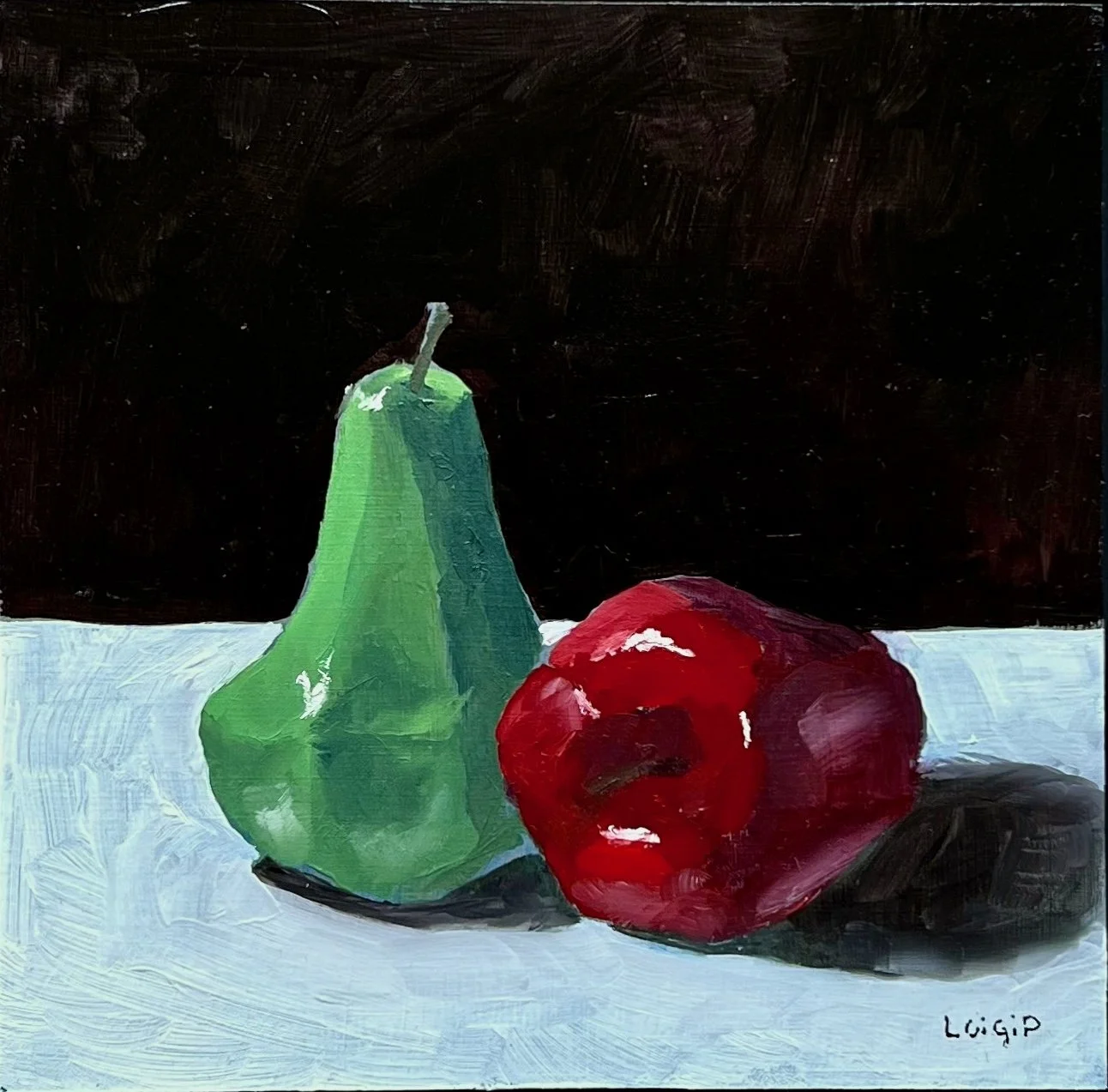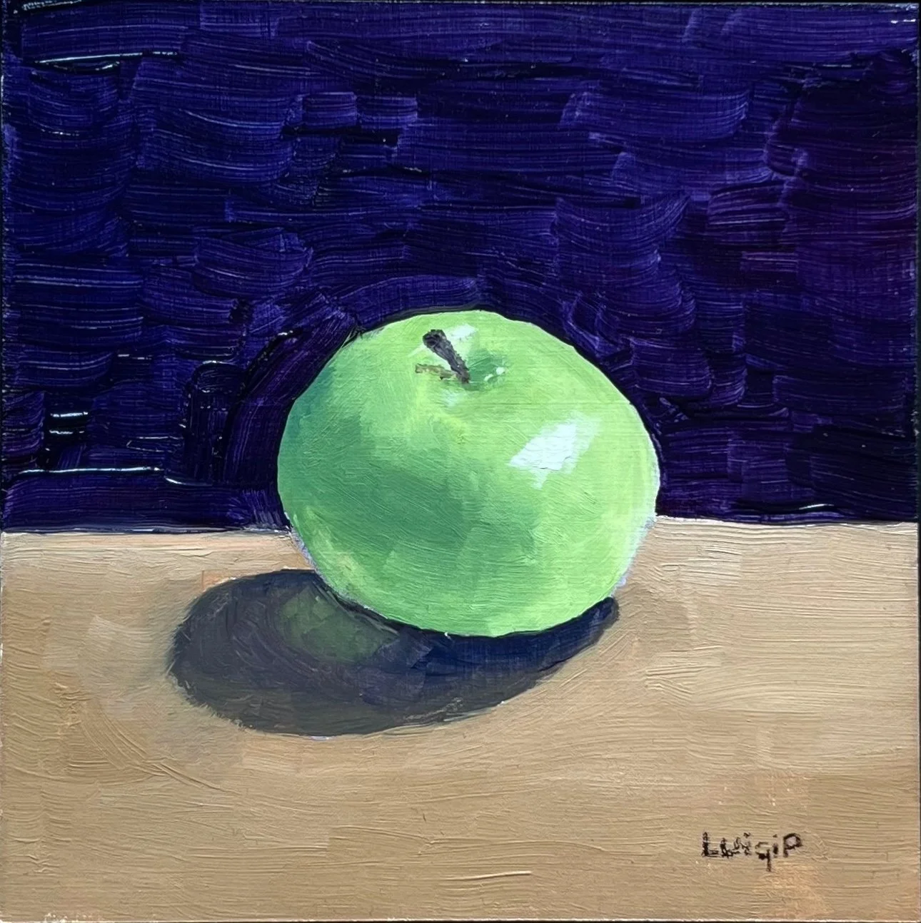 Green Apple - Oil on Paper on Panel 20cm x 20cm (21cm x 21cm framed)